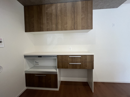 木目がおしゃれなシステムキッチン(食洗機付き)