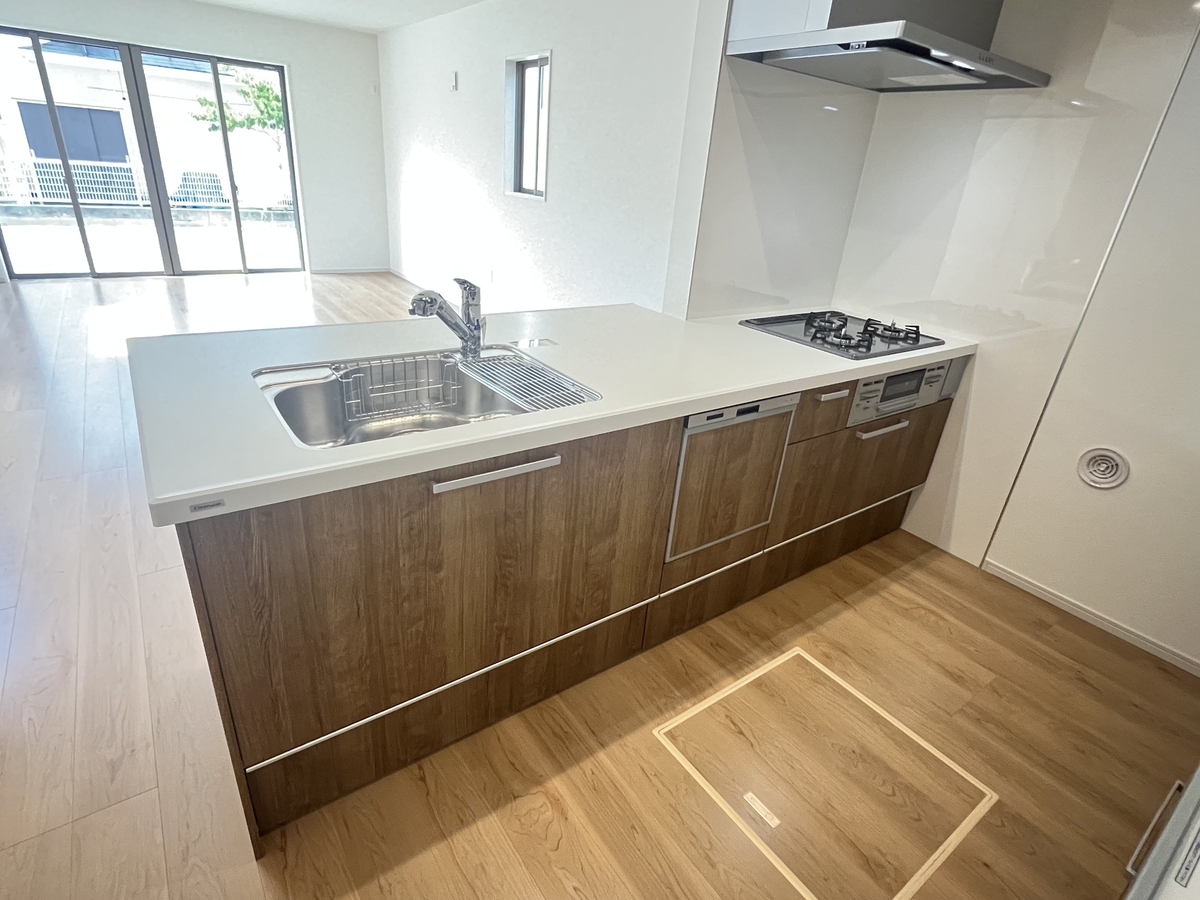 □システムキッチン(食器洗浄乾燥機、3口ガラストップコンロ、グリル)