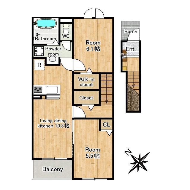 | 間取り | 2LDK | 間取り 詳細 | 洋6.1 洋5.5 LDK10.3 |